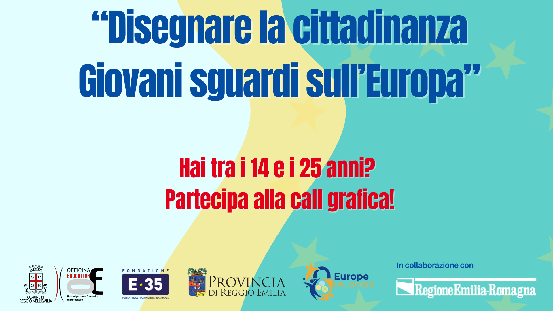 Il Comune di Reggio Emilia, in collaborazione con Fondazione E35, Reggiana Educatori società cooperativa sociale, la Provincia di Reggio Emilia e la Rete #viacassoliuno, promuove il concorso pubblico “Disegnare la cittadinanza – Giovani sguardi sull’Europa” con l’obiettivo di promuovere una riflessione condivisa e un confronto sul significato di cittadinanza europea come insieme di valori, diritti, doveri e relazioni, attraverso l’ideazione e la produzione di grafiche che aiutino tutte e tutti a: