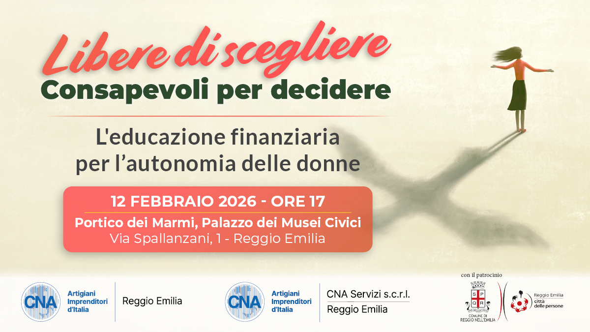 CNA Associazione e CNA Servizi s.c.r.l, con il patrocinio del Comune di Reggio Emilia, organizzano l’incontro “Libere di scegliere, consapevoli per decidere”, sulla violenza economica e sulla conseguente educazione finanziaria per rendere le donne più autonome nella gestione delle proprie finanze.